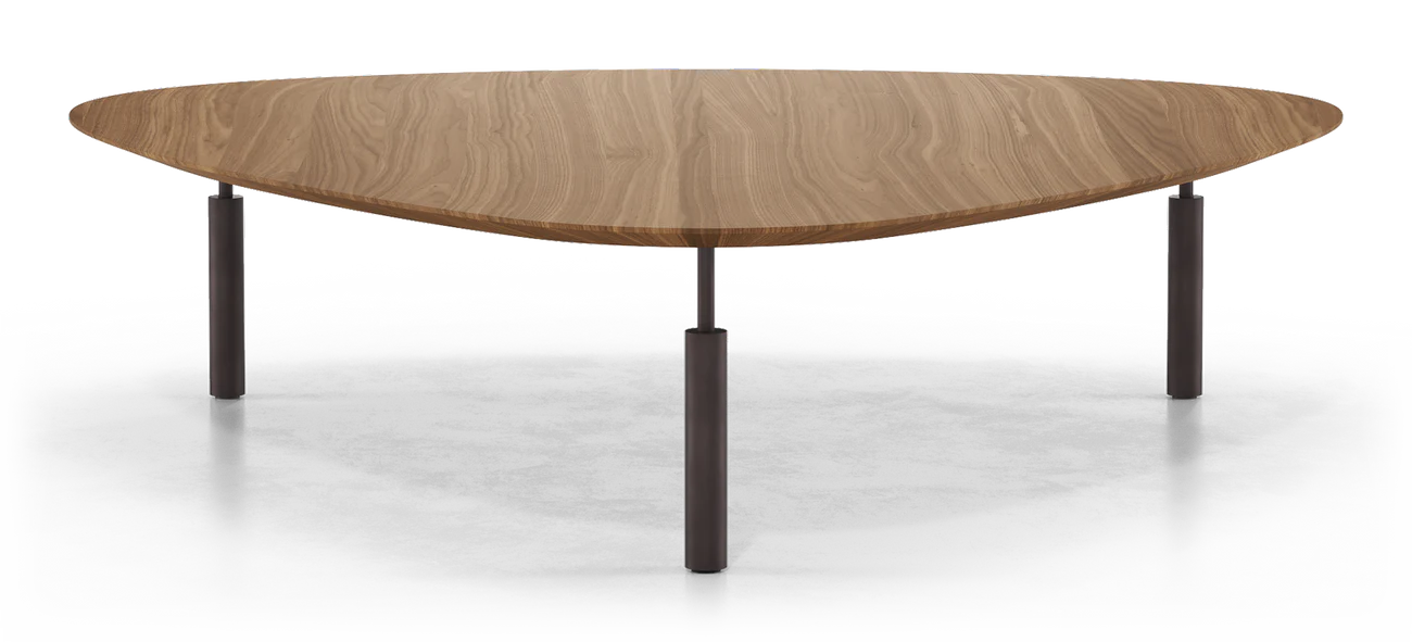 WITH ITS TAPERED, TRIANGULAR SHAPE - AKIN TO A GUITAR PICK - THE FINSBURY HIGH COFFEE TABLE'S ULTRA-THIN SURFACE IS WARMLY FINISHED IN WOOD FOR AN INVITING FEEL.