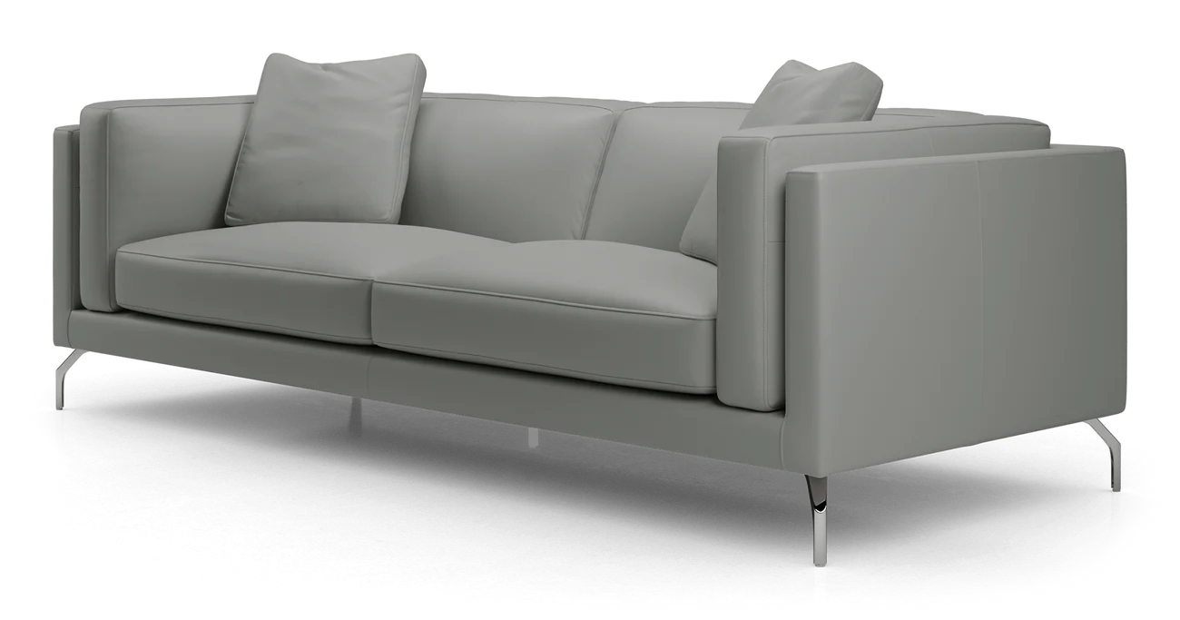 Sturdily built with kiln-dried solid wood frame and elegantly detailed with hand-sewn French seams. Semi-aniline top-grade Brazilian leather completes the quality construction, for a statement sofa that deserves pride of place. Includes two oversized leather throw pillows.