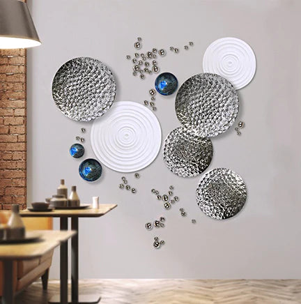 Imitating puddles of water and raked sand. Handmade of outdoor friendly stone powder and resin. Expect color variations and changes with age and exterior elements. Art side keyhole and security clip hanger provided (Wall side screw not included. We suggest using a 1/4"D head screw).